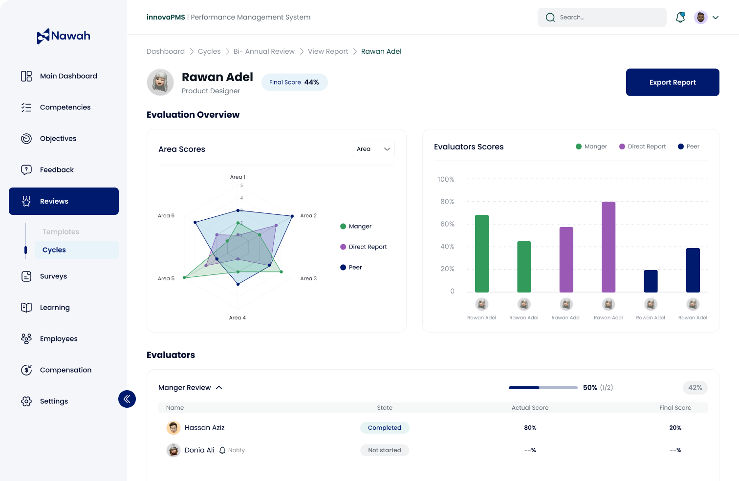 يربط أداء الأفراد بالأهداف الاستراتيجية عبر دورة تقييم ذكية قائمة على البيانات.